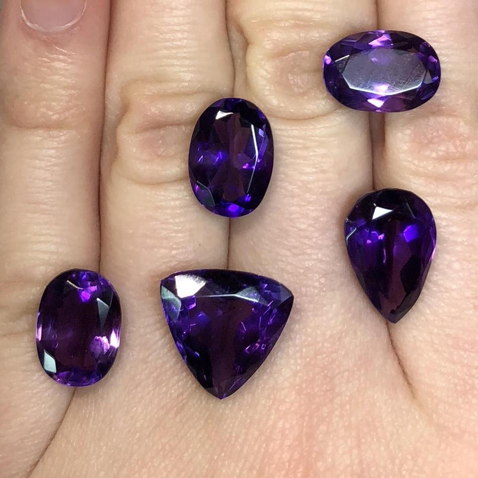 Description: **SOLD** We will accept purchase inquiries** Amethyst from Brazil in various shapes and weight. From 3.87 carats to 7.20 carats. Buy one or all as a collection.(depending on availability) These were cut here in New York City. Beautiful color of ripe grapes. Perfect for the collector or to create a custom piece of jewelry. We can help you make something unique and special. Let's create you a custom ring or pendant. Our KDJ team is here to help.